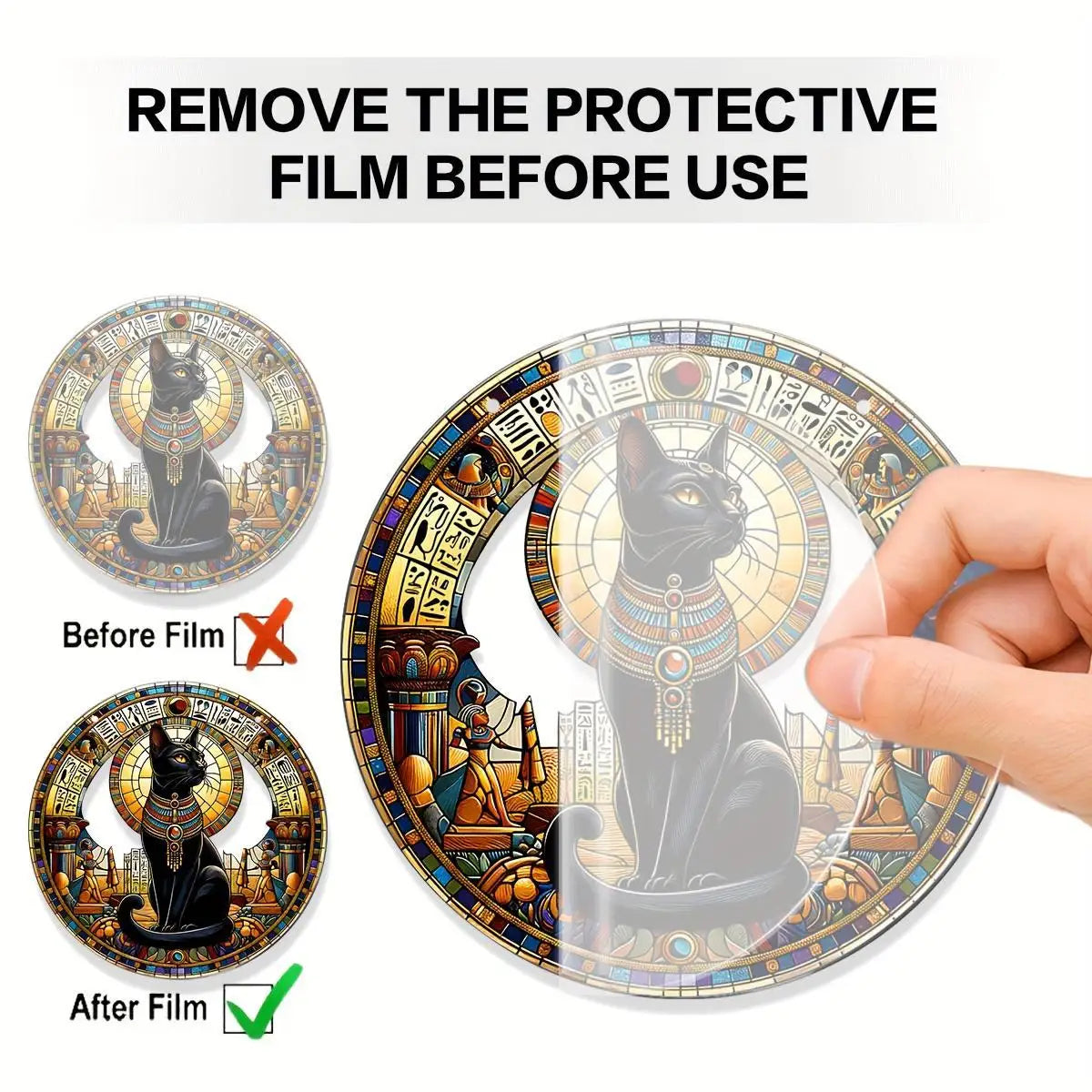 Experience the mystique of ancient Egypt with the Egyptian Bastet Cat Suncatcher, a stylish wall hanging that brings a regal feline motif into your space. Crafted from PVC, this decorative piece offers lightweight, durable home décor that hangs beautifully on a window or wall, catching light and brightening your room with subtle charm.