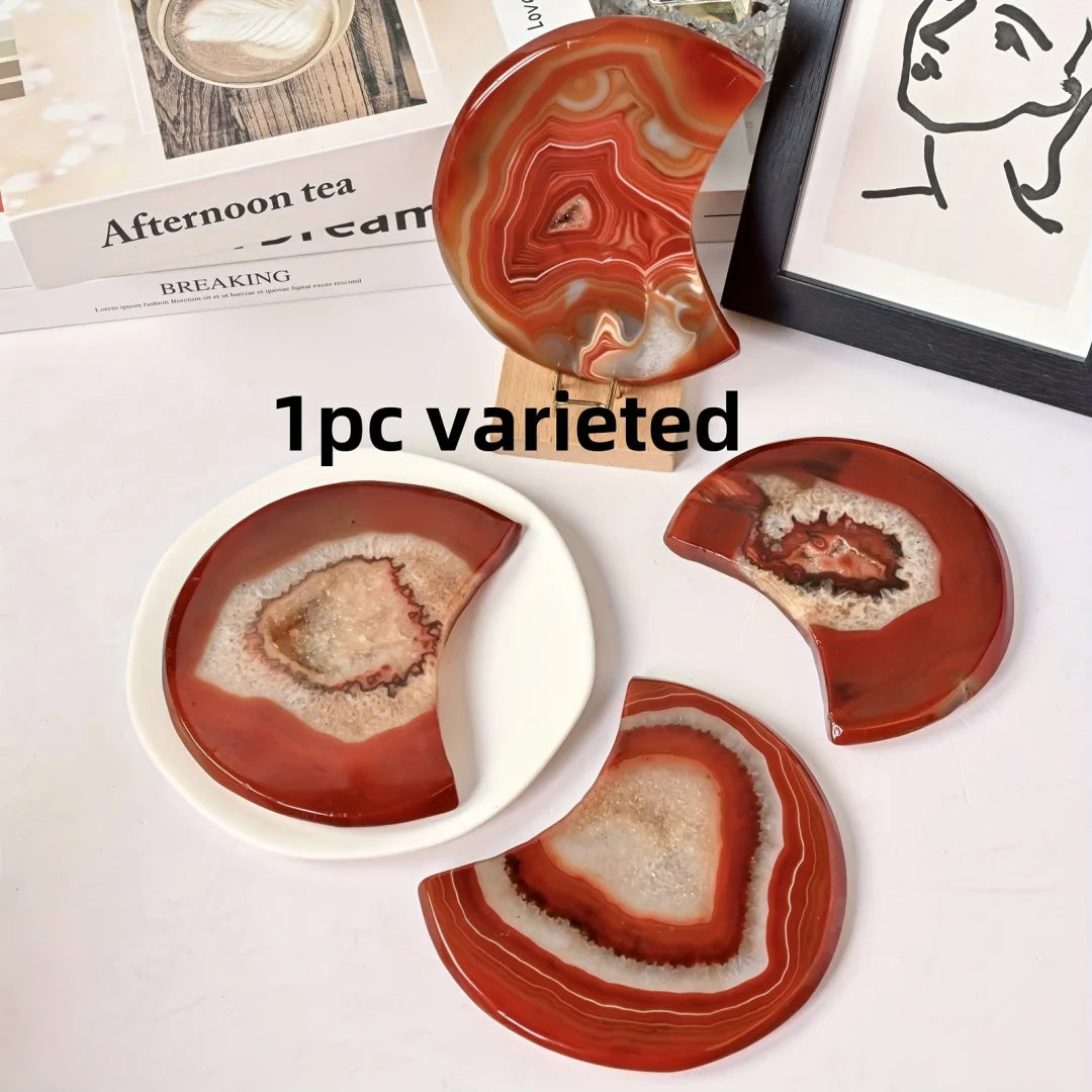 Designed as a versatile home decor gift, this Red Agate Geode Moon Shape Crystal Stone makes a thoughtful present for birthdays, housewarmings, or special occasions. Its bold hue and unique form catch the eye from every angle, creating a focal point that anchors your interior design with a touch of artistic flair.