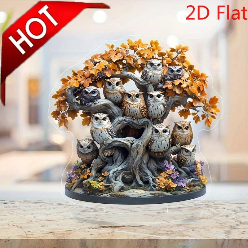 2D Owl and Tree of Life Acrylic Suncatcher Elegant Desktop or Wall Decor for Living Room Bedroom and Parties