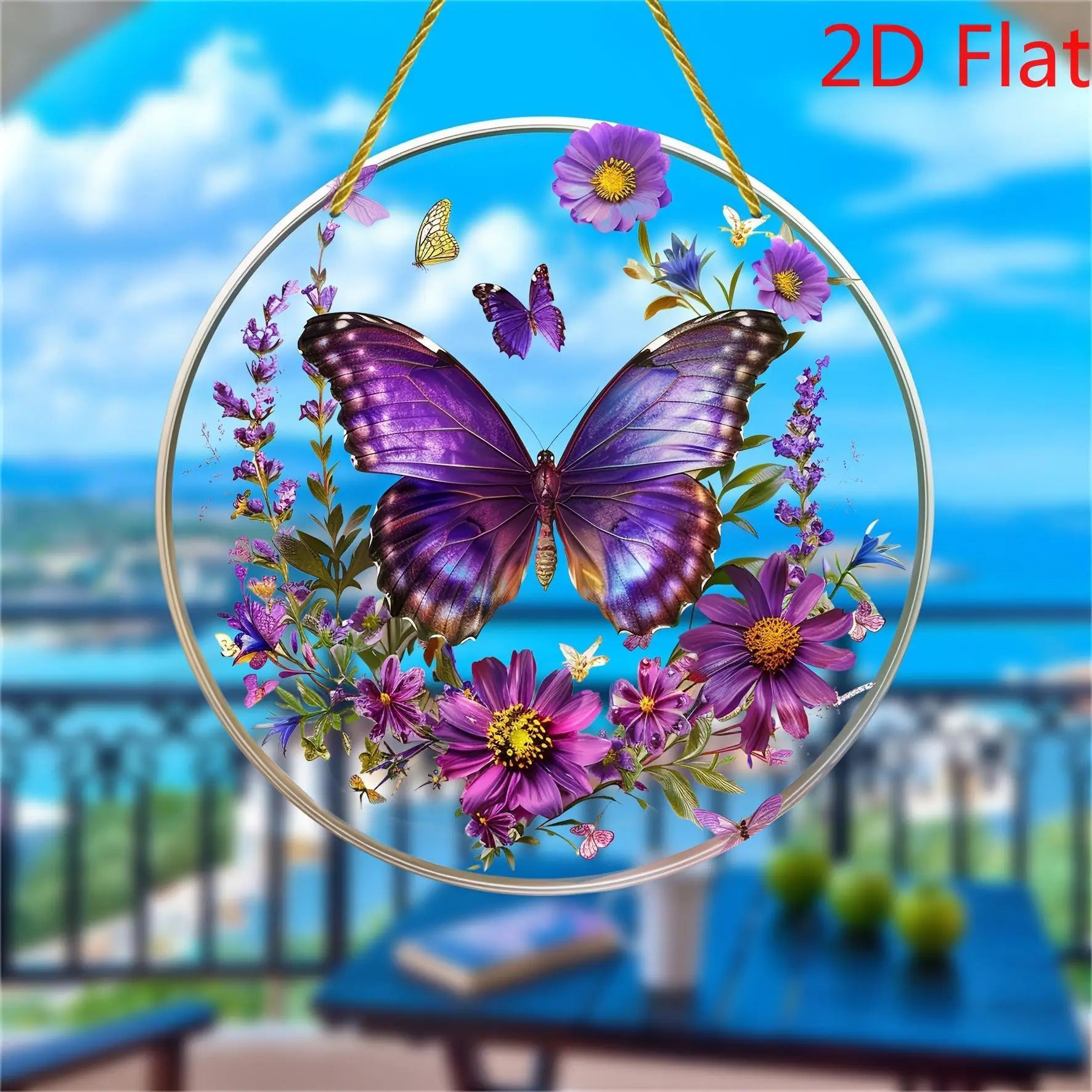 2D Purple Butterfly Suncatcher Stained Glass Window Hanging
