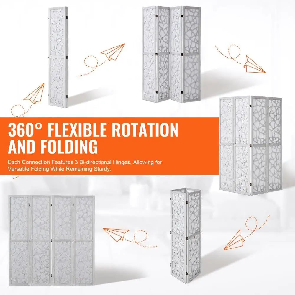 Transform your space with the 4 Panel Wood Folding Screen Carved Room Divider For Home. Crafted from premium paulownia wood and finished in a pristine white, this four-panel privacy screen blends modern minimalism with rustic charm to create an inviting, versatile backdrop in any room.