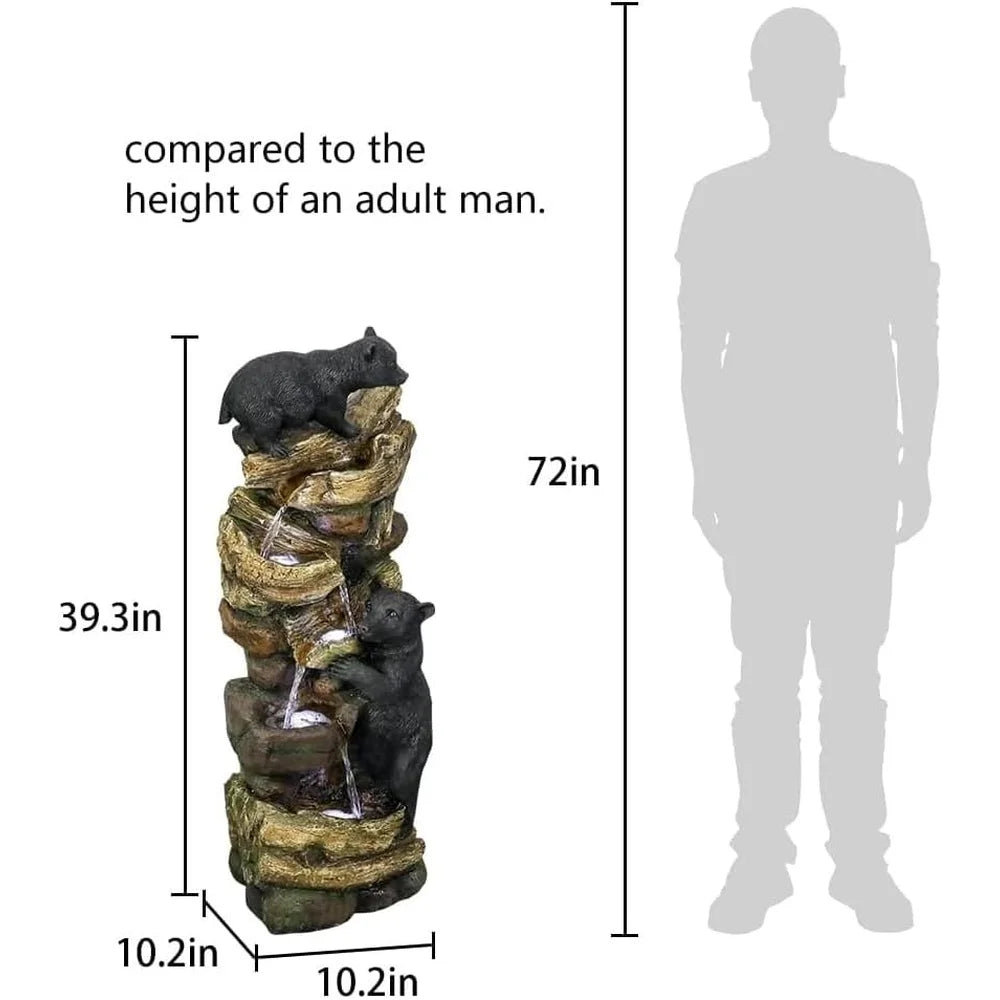 5 Tier Outdoor Garden Water Fountain Bears Climbing Tree Resin Fountain with LED Lights Lawn Patio Decoration