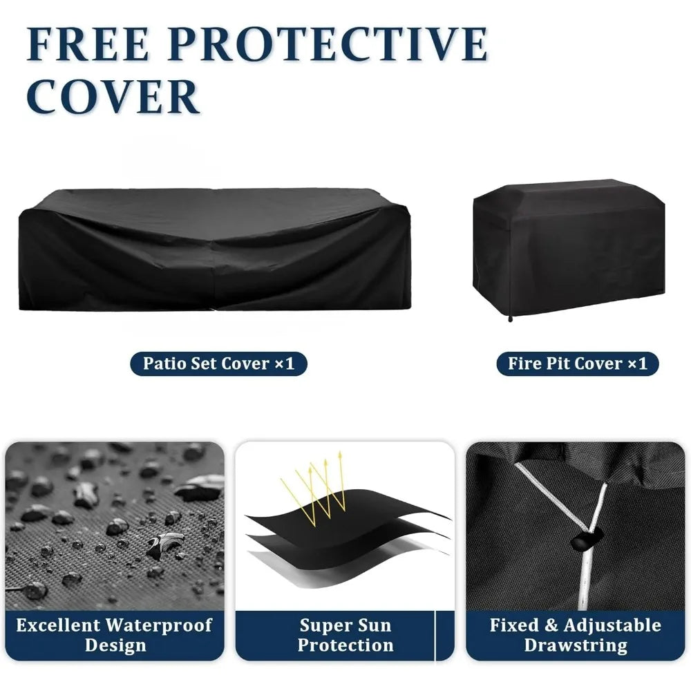 【Product Packaging and After-sales】The outdoor furniture set consists of 8 pieces: 2 corner sofas, 4 single sofas, 1 fire pit table, 1 coffee table, and 2 waterproof covers. For safety during transportation, the products will be divided into four separate boxes and may arrive at different times. We appreciate your patience during this time. If you have any questions or encounter any issues with these outdoor sofas, please feel free to contact us for assistance.