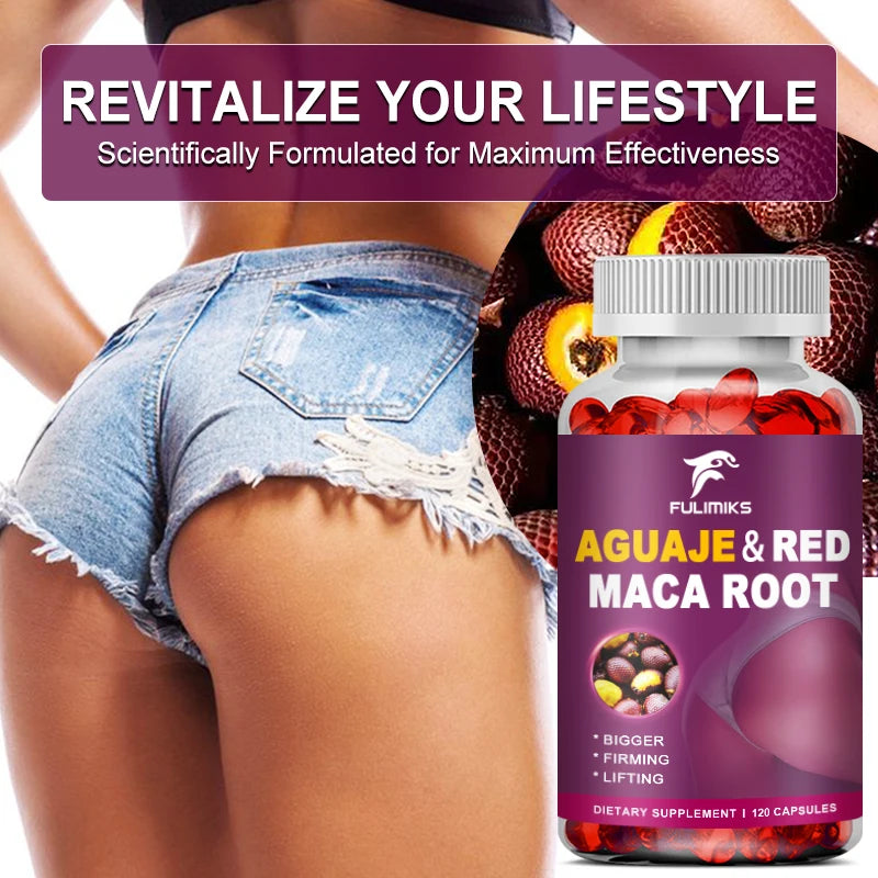 Aguaje Supplement Red Maca Root Extract Capsules Enhances Curves, Firms, Sculpting, Supports Buttocks and Immune Health