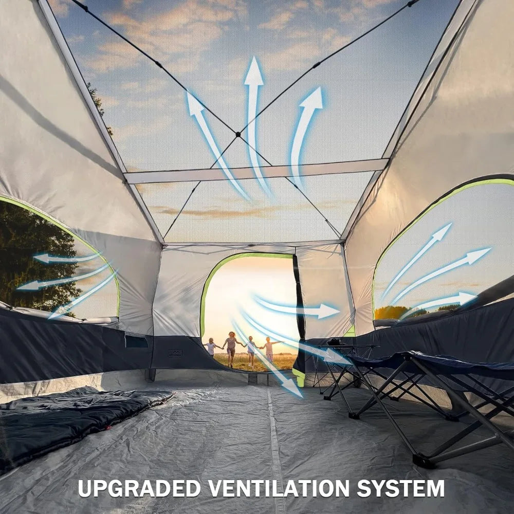 Crafted from high-quality synthetic fibres and polyester, this tent is lightweight yet durable, ensuring it can withstand various weather conditions. Weighing just 43 kilograms, it's easy to transport without compromising on sturdiness. The fully vented roof enhances airflow, keeping the interior cool and comfortable, making it perfect for warm summer nights.