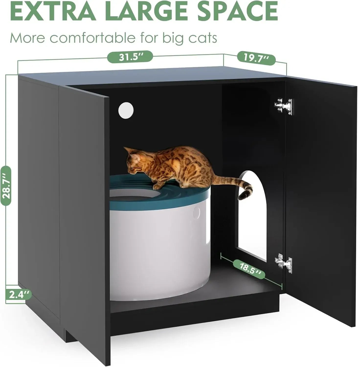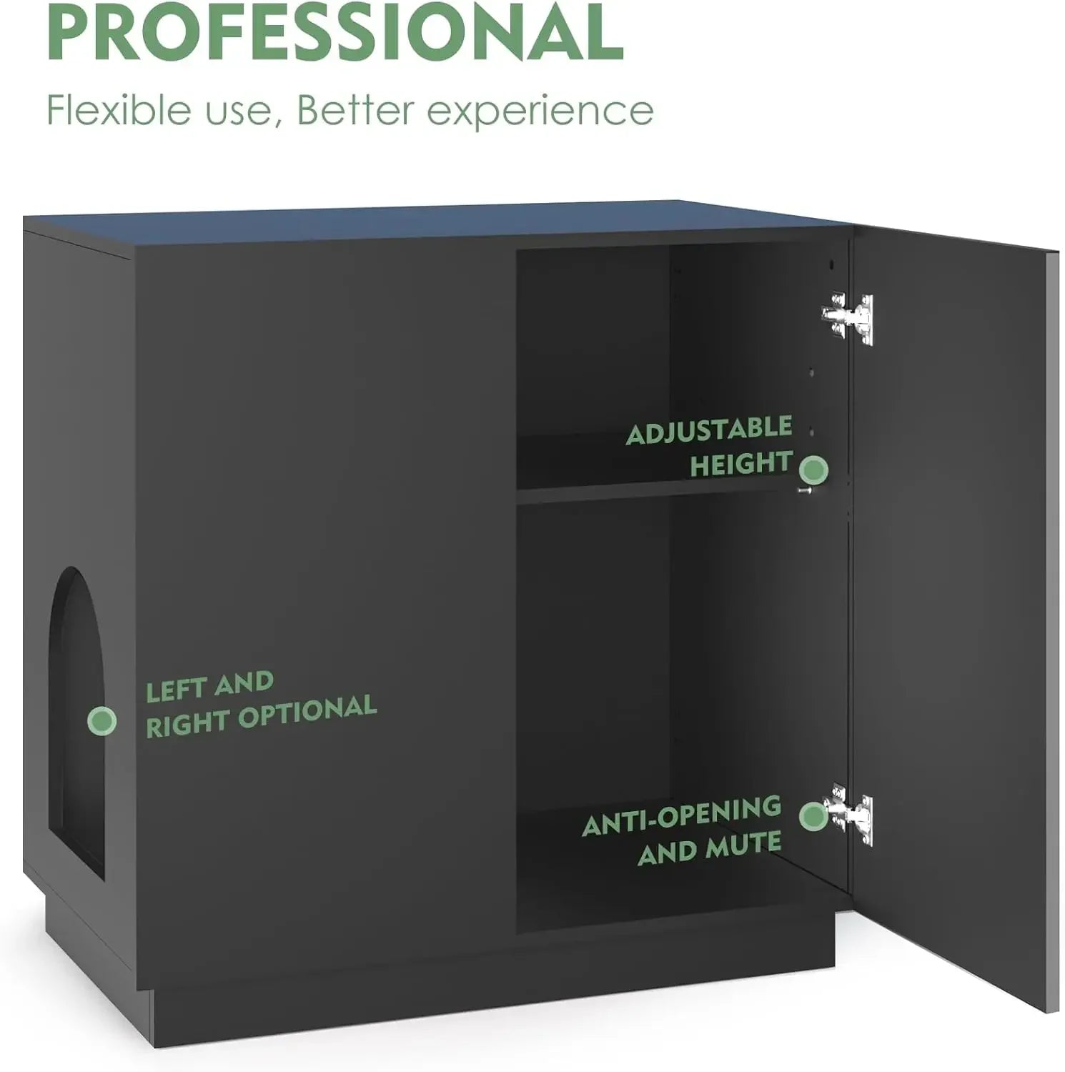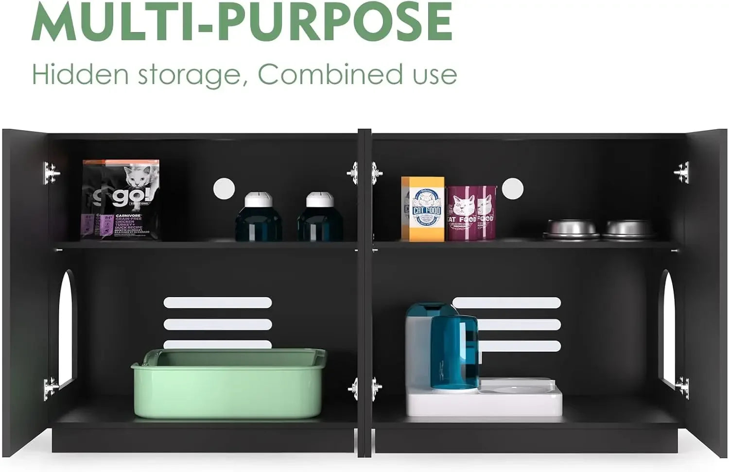 Litter Box Enclosure Large Cat Litter Box Furniture Modern Design with Storage Side Cabinet in Black