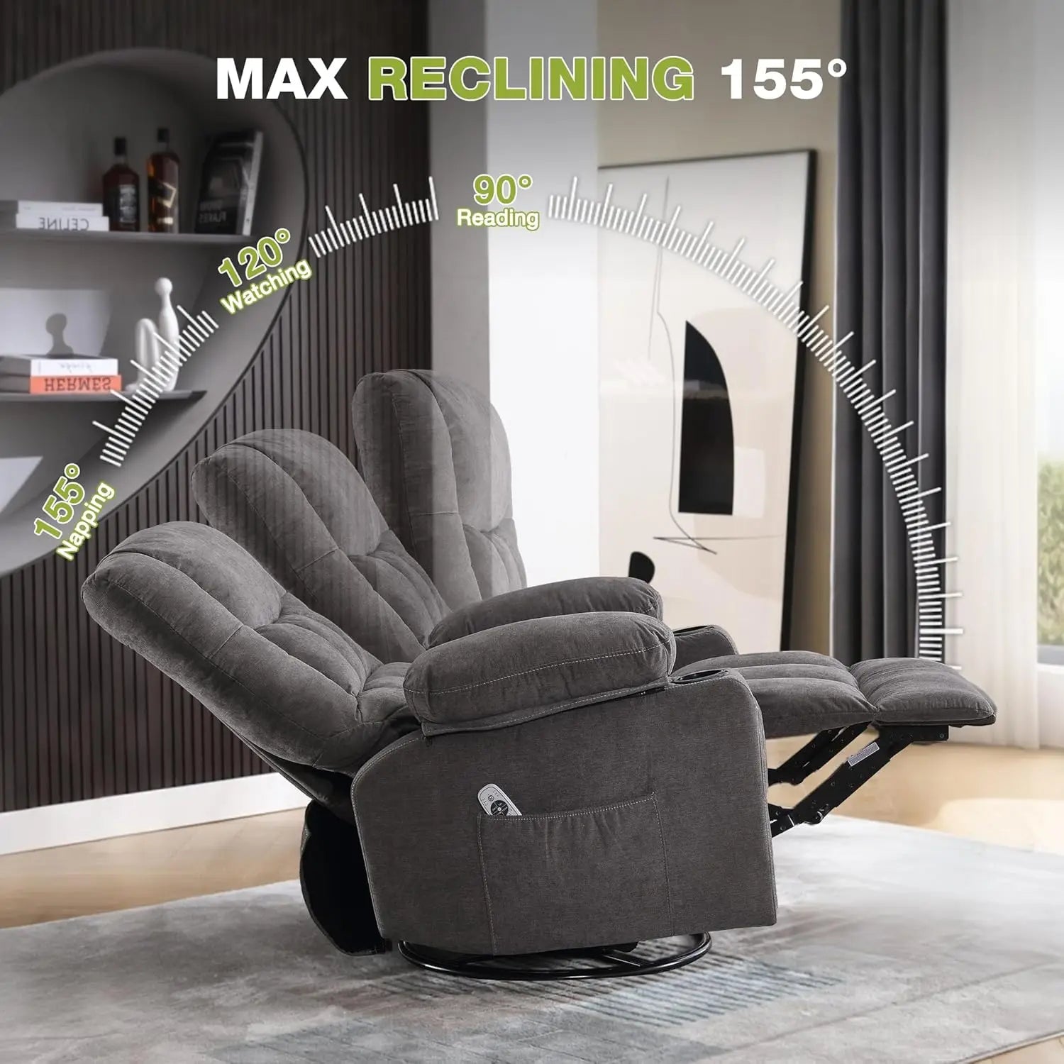 Transform your living space into a haven of relaxation with the Massage Swivel Recliner Chair from CozyKorner2. This oversized rocker recliner is designed with your comfort in mind, offering an unparalleled combination of style, functionality, and therapeutic benefits.