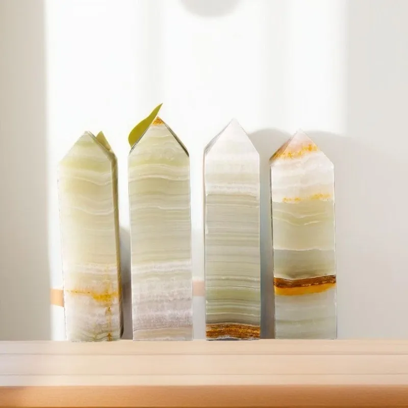 Natural Afghan Jade Four Sided Crystal Tower Magic Point Healing Stone Obelisk Wand Stone Home Decor