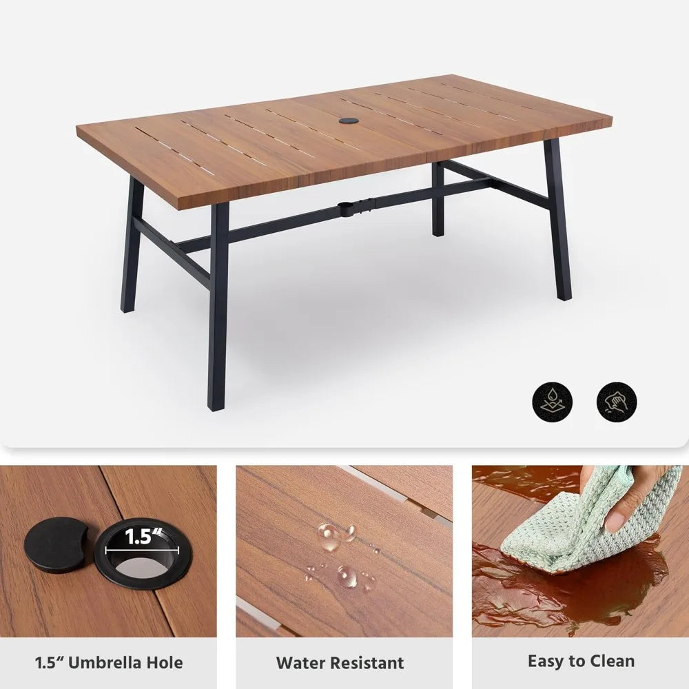 With dimensions of 64.5 x 35.8 x 28.3 inches and a weight of 100 pounds, this dining set is designed for stability and convenience. Whether hosting a summer barbecue or enjoying a quiet dinner under the stars, this Outdoor Patio Dining Set will elevate your outdoor experience.