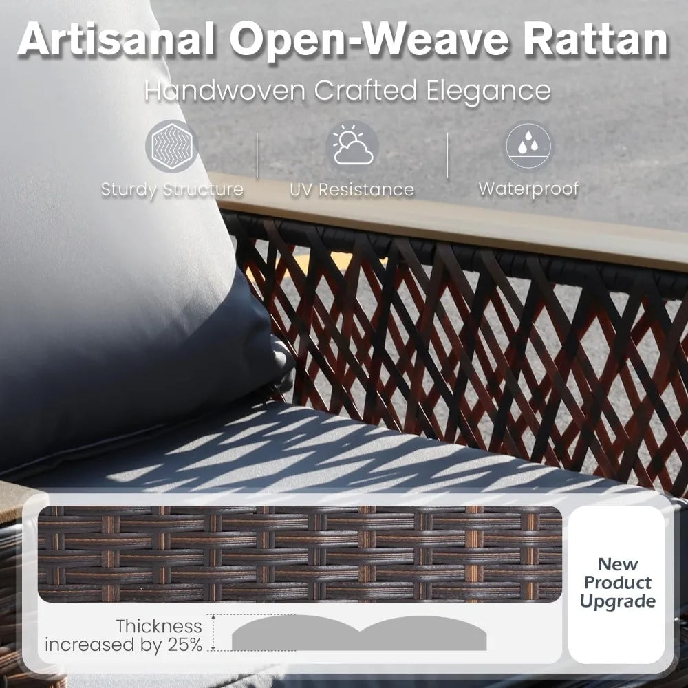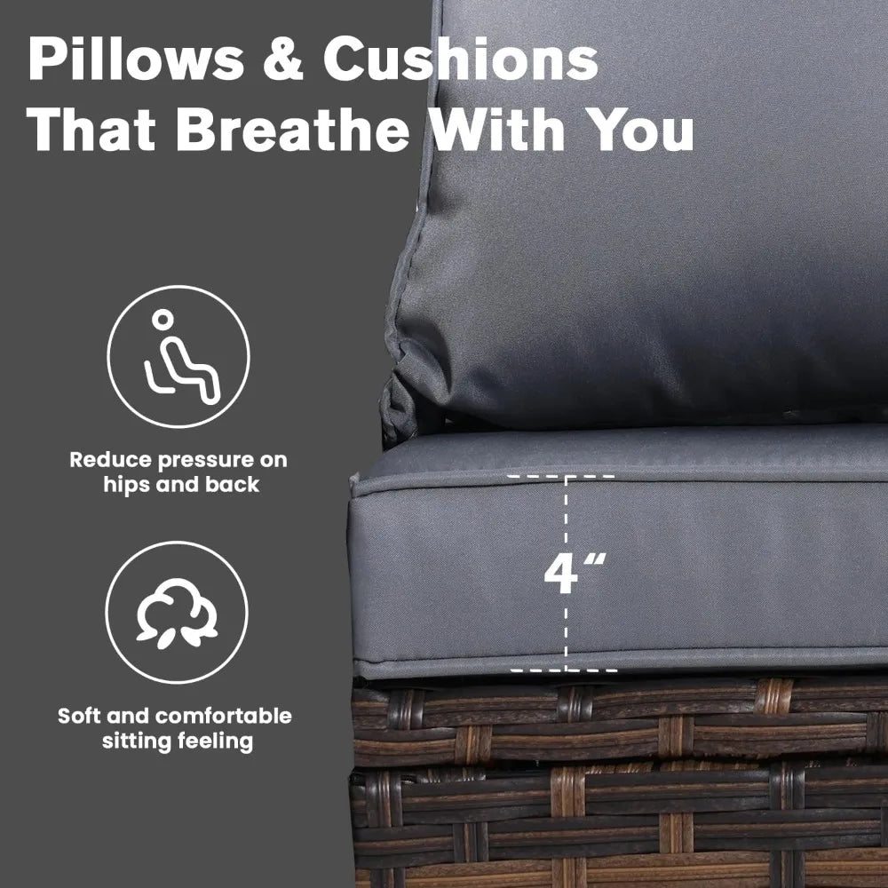 Transform your outdoor space into a luxurious retreat with our Patio Furniture Set from CozyKorner2. This stunning all-weather conversation set is expertly crafted to provide both comfort and style, making it the perfect addition to your patio or garden.