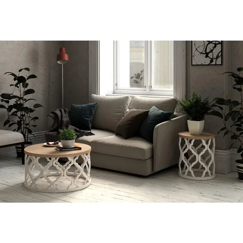 Transform your living space with the Rustic Farmhouse Coffee Table, a stunning piece of furniture that embodies the charm of French country decor. Crafted with a distressed wood top and an elegantly designed curved motif frame base, this coffee table is not just functional but also a captivating centerpiece for your home.